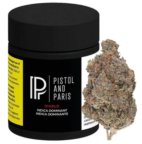 The enigmatic Diablo flower carries an air of mystery, with its origins believed to be a cross between MKU and Bubba Kush. Upon opening the bag, you'll be greeted by intense, eye-watering waves of peppery diesel that signal the strain's potent nature. The smoke follows suit, offering a spicy, gassy flavour that tingles the throat with each hit. Diablo acts fast, quickly inducing heavy, droopy eyes and a deeply relaxing full-body effect that settles in with ease. The buds themselves are sticky and dense, with a medium green hue and a thick coating of resinous trichomes.