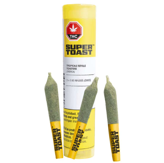 Crank up the toast level with Toasters. Super flavourful and potent kief-crusted joints infused with THC distillate and a juicy blend of pineapple, mango and guava with a zing of citrus. Super Toast. Always Ready.