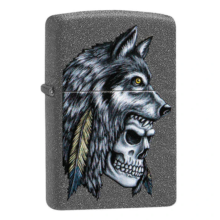 Zippo 29863 Bold Wolf Skull and Feather Graphic Lighter