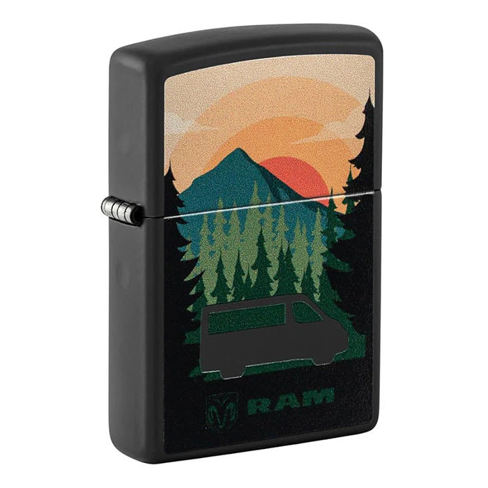 Zippo Black Matte Ram on Mountains Windproof Lighter